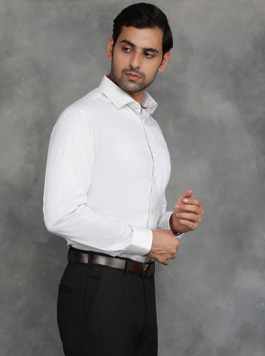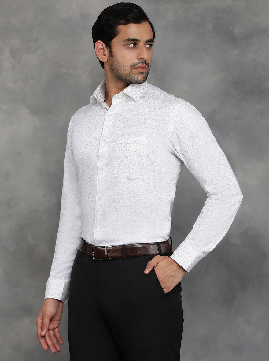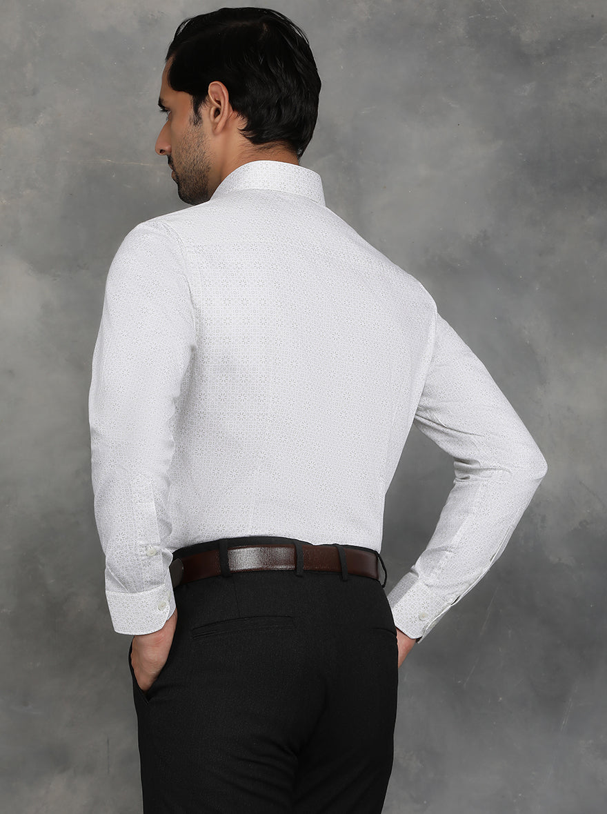 White Printed Slim Fit Formal Shirt | GreenFibre