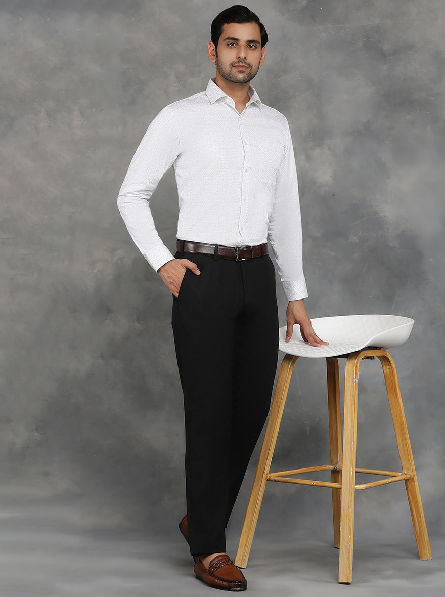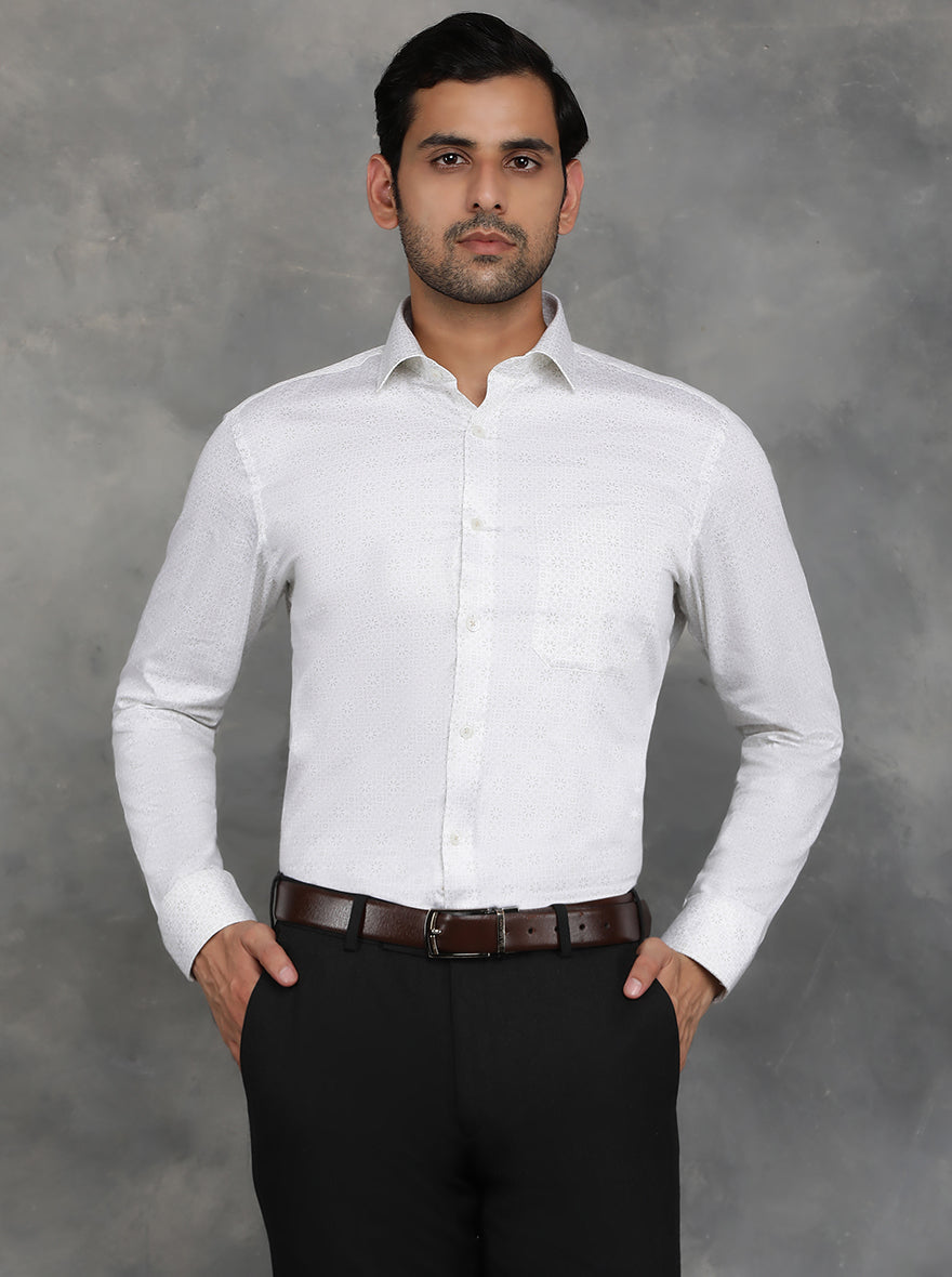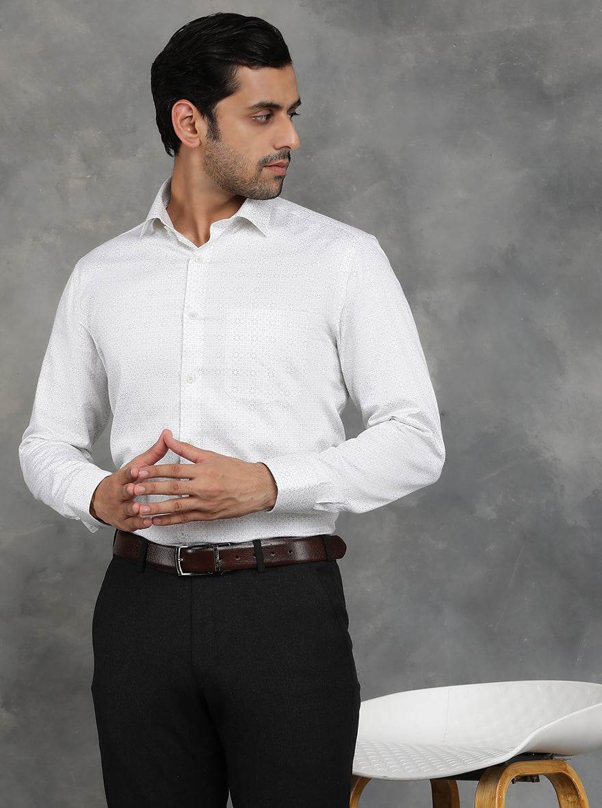 White Printed Slim Fit Formal Shirt | GreenFibre