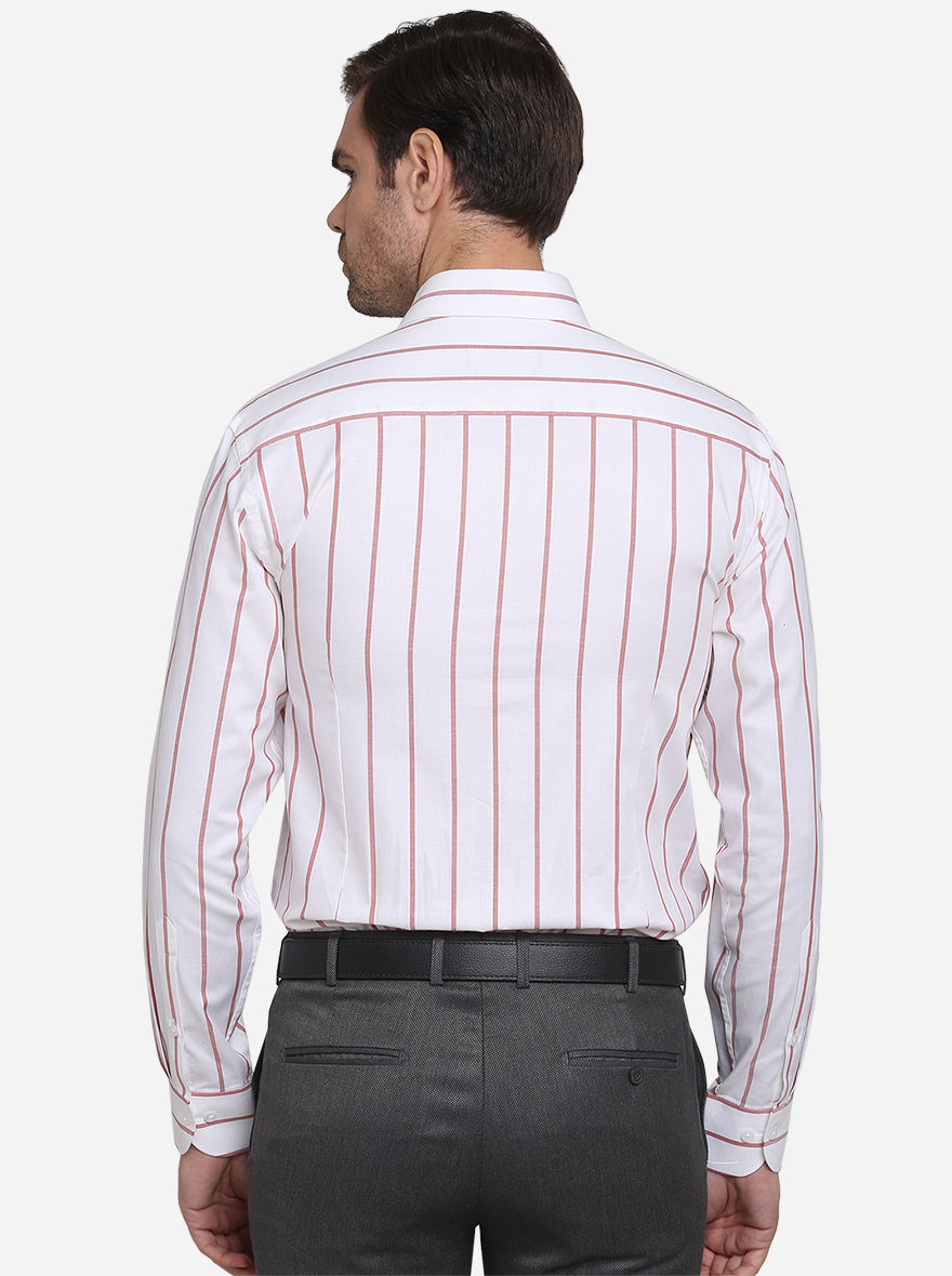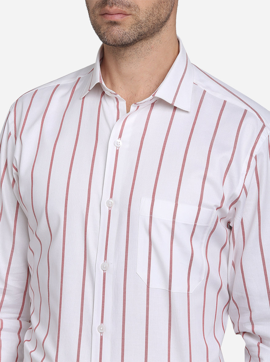 White & Red Striped Slim Fit Formal Shirt | Metal
