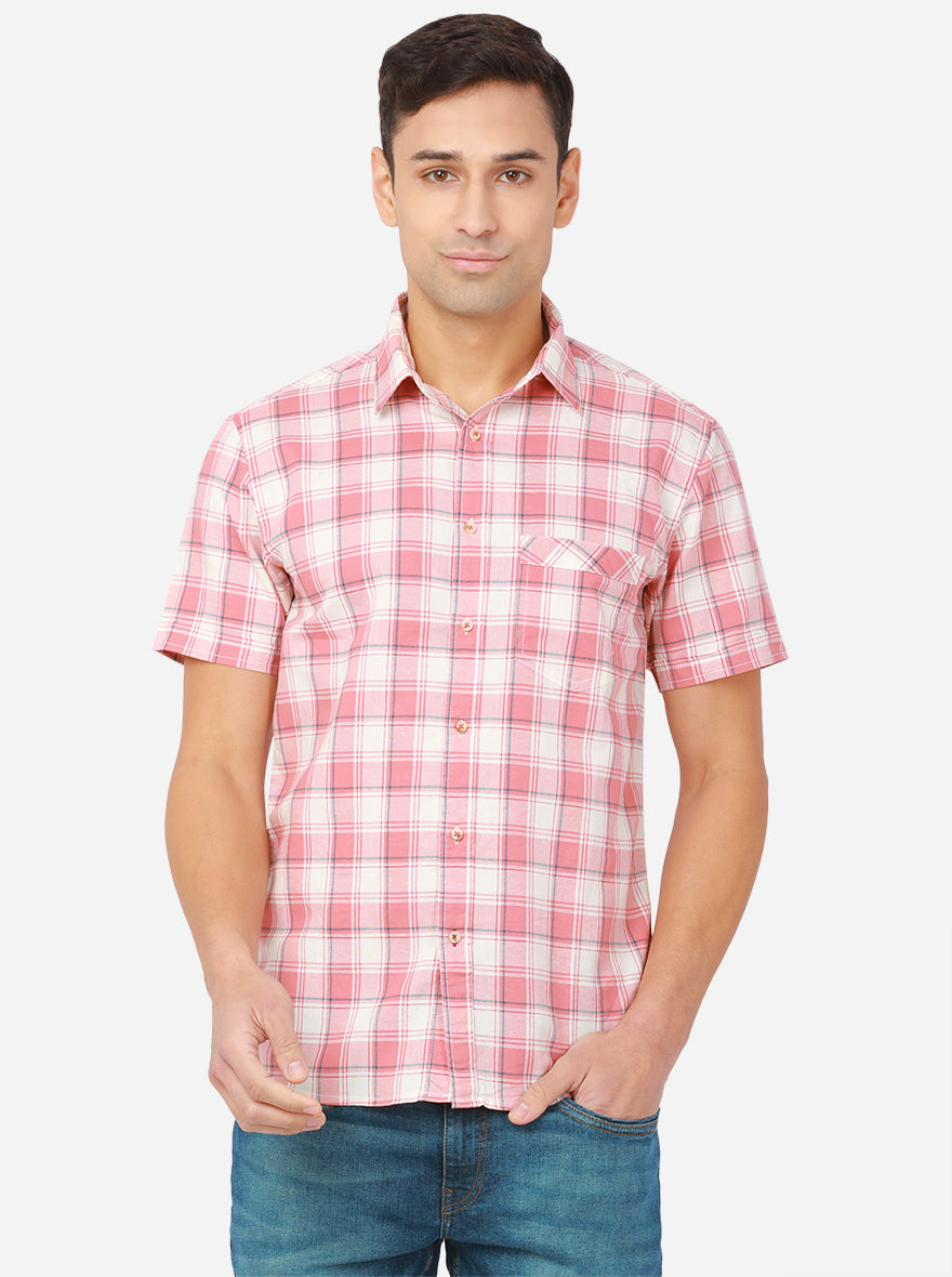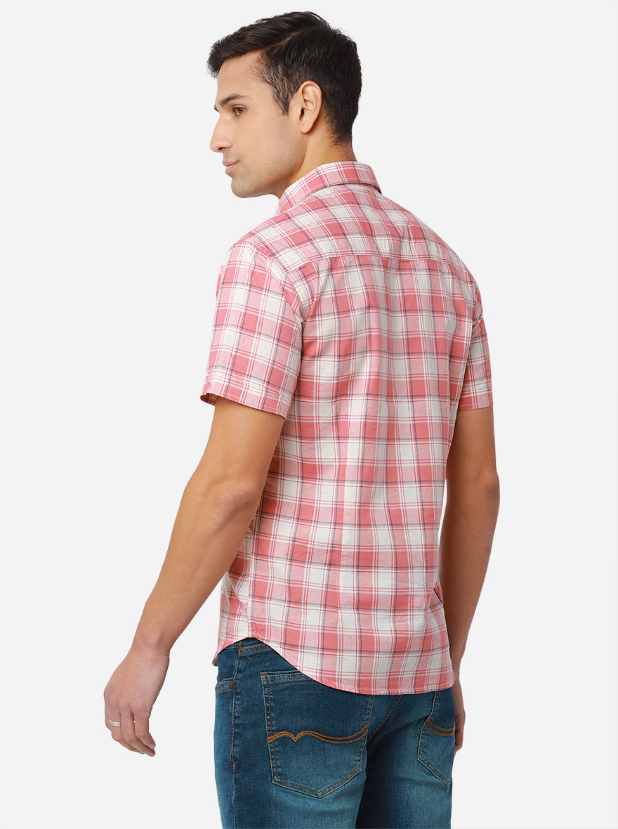 White & Rosette Pink Checked Slim Fit Semi Casual Shirt | Greenfibre