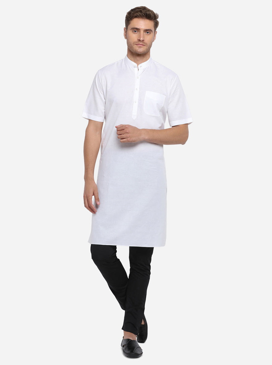 Details: Shop this half-sleeve Modi Kurta by JadeBlue in the white shade to amp up your collection of traditional outfits! Made from 100% cotton, it comes with a regular-fit to enhance your style.