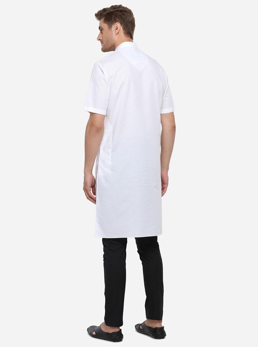 White Self Design Regular Fit Modi Kurta | JadeBlue