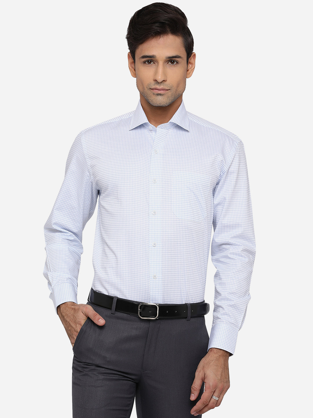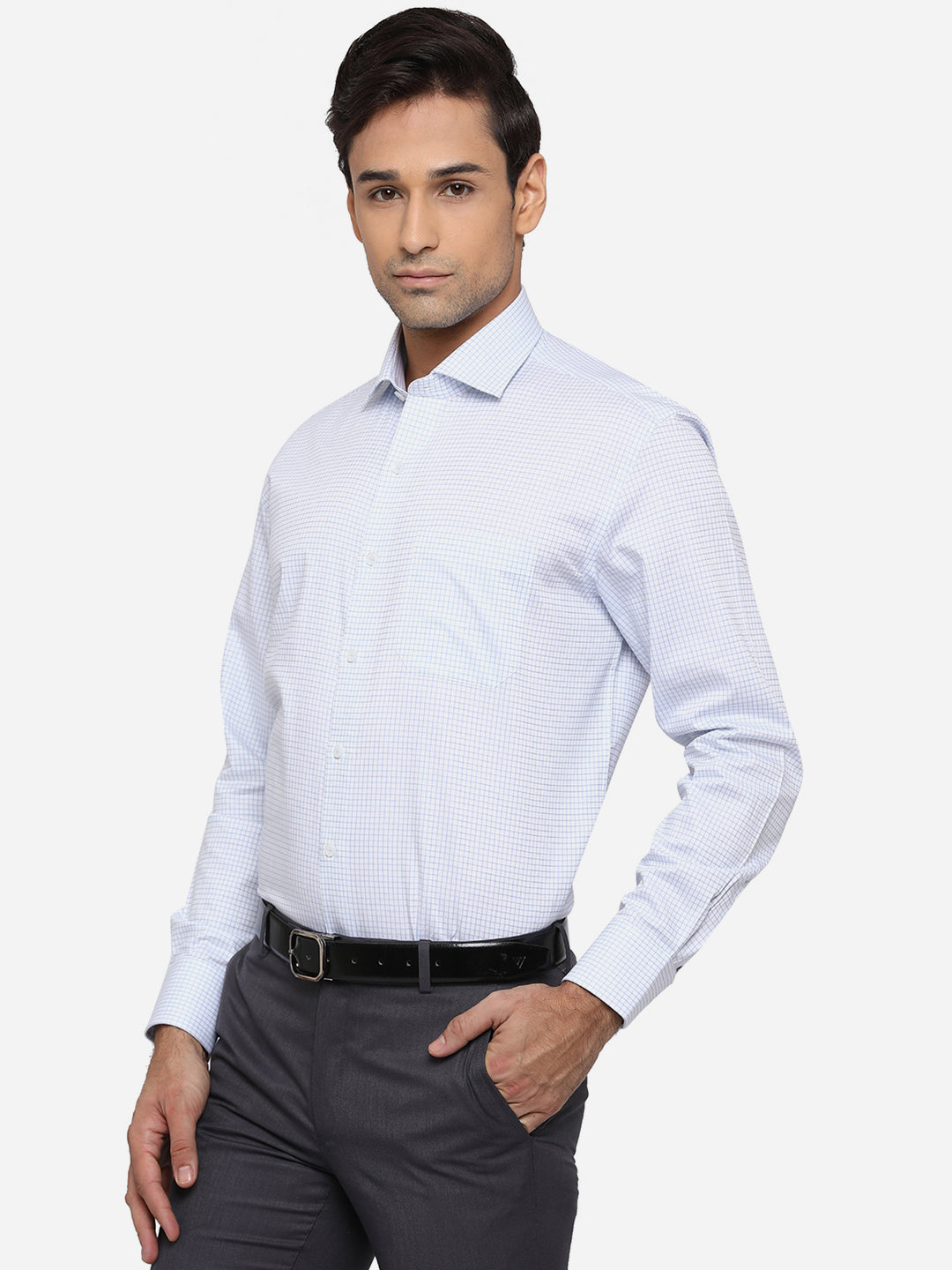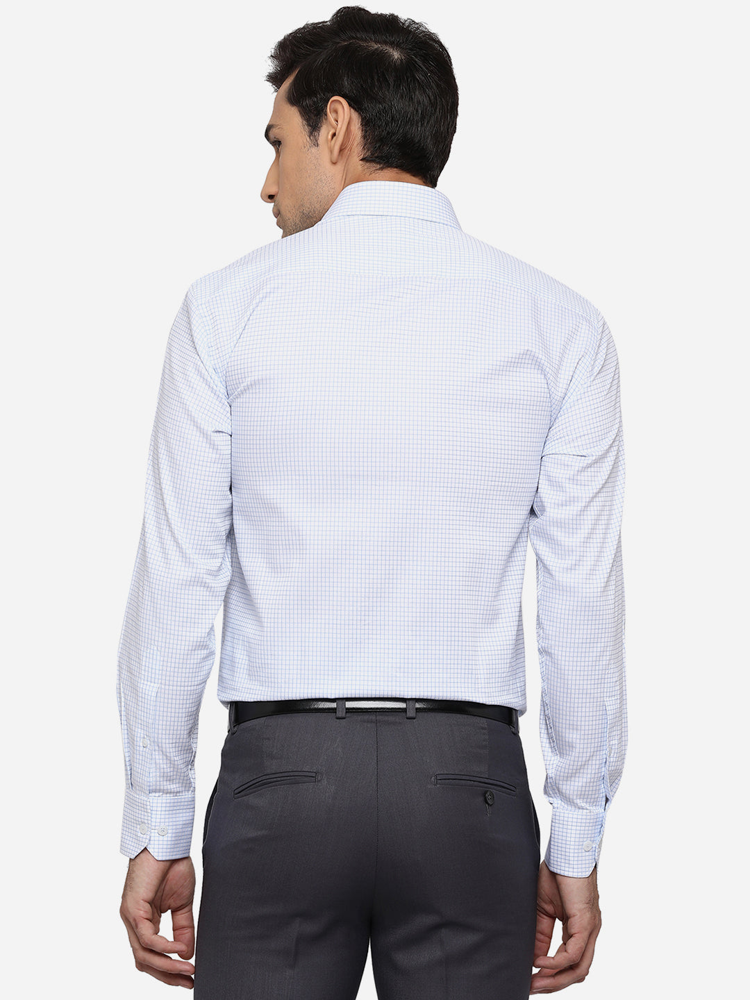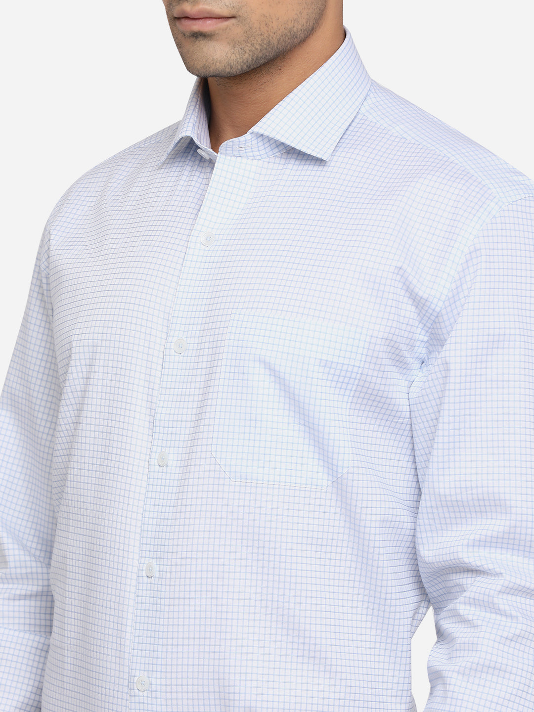 White & Sky Blue Checked Regular Fit Formal Shirt | JadeBlue