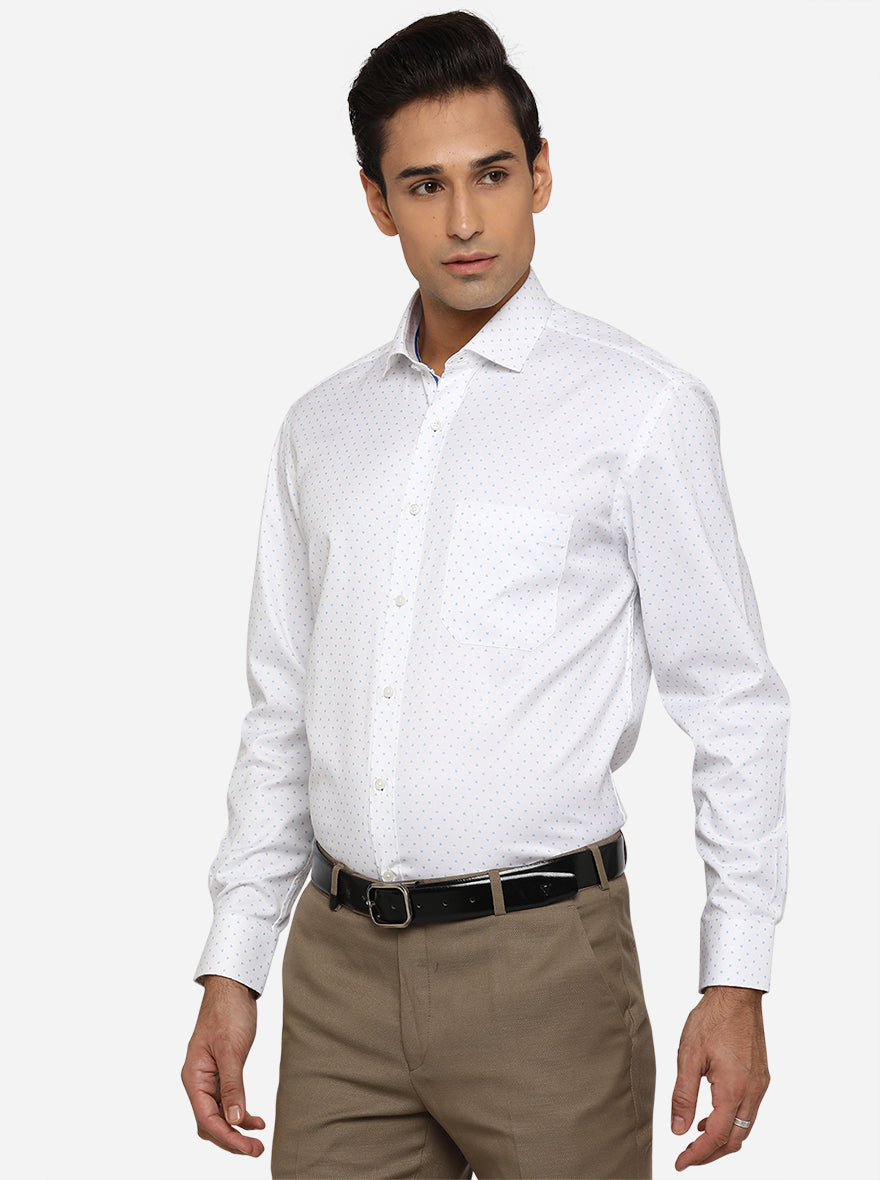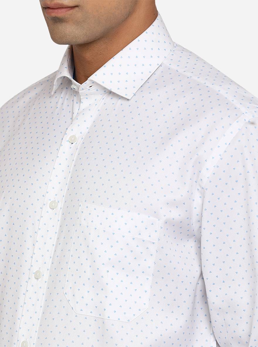 White & Sky Blue Printed Regular Fit Formal Shirt | Greenfibre