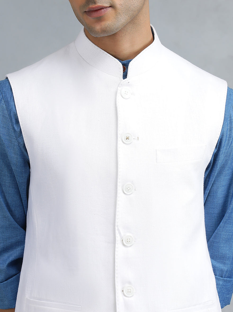 White Solid Regular Fit Modi Jacket | JadeBlue