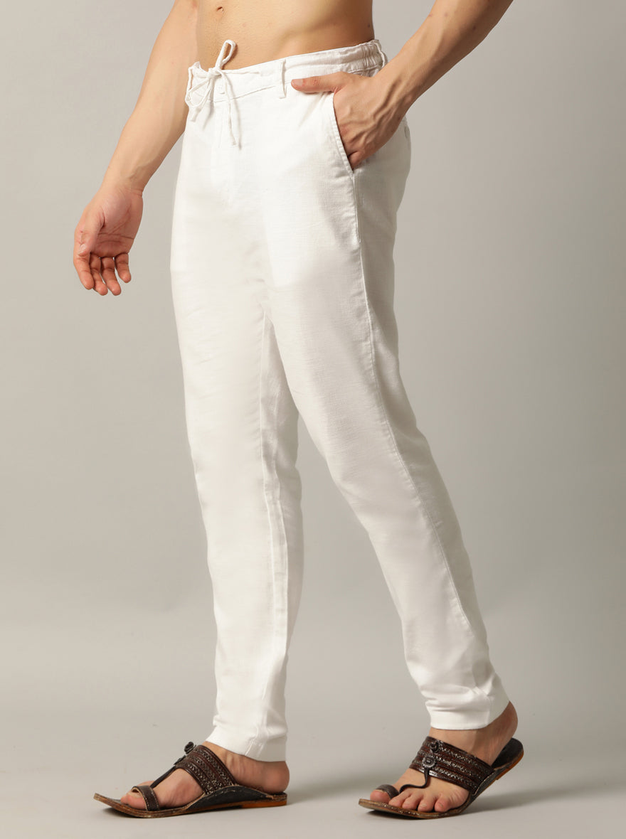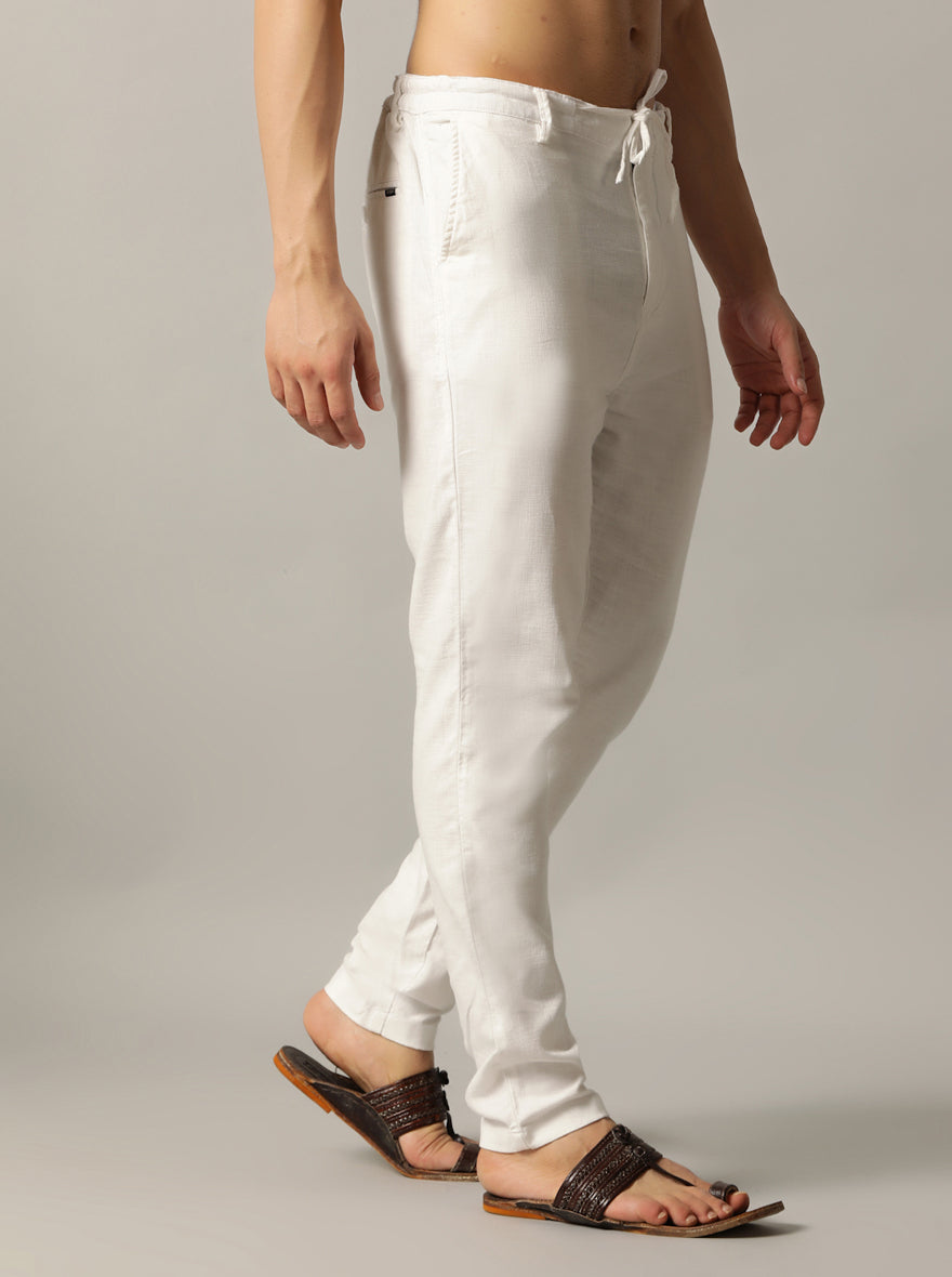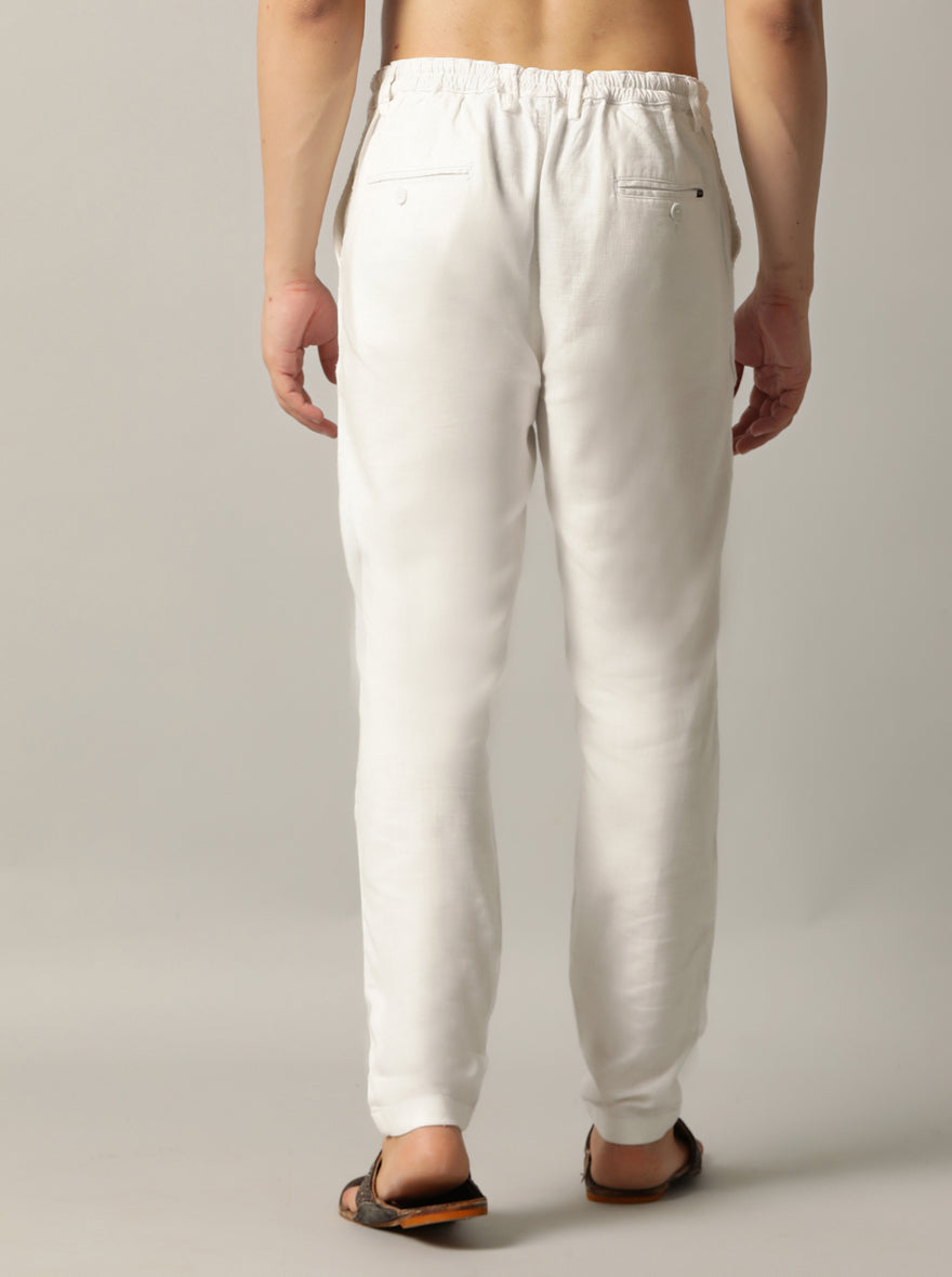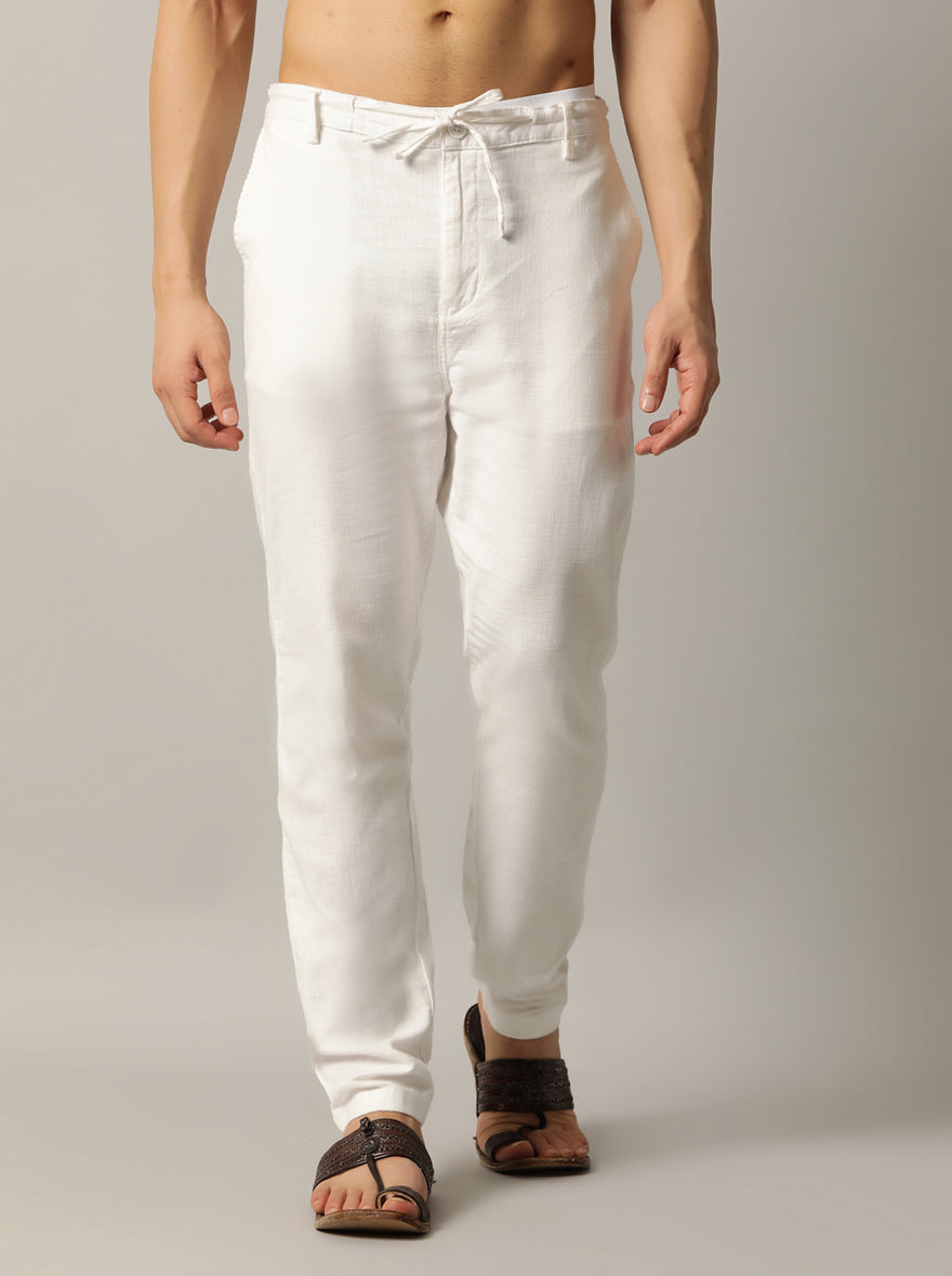 Details: Upgrade your wardrobe with the JadeBlue Track Pant crafted with 100% Cotton and styled with a Regular Fit fit. Perfect for occasions that call for Solid patterns in the stunning White shade. Ideal for those who value both comfort and style.