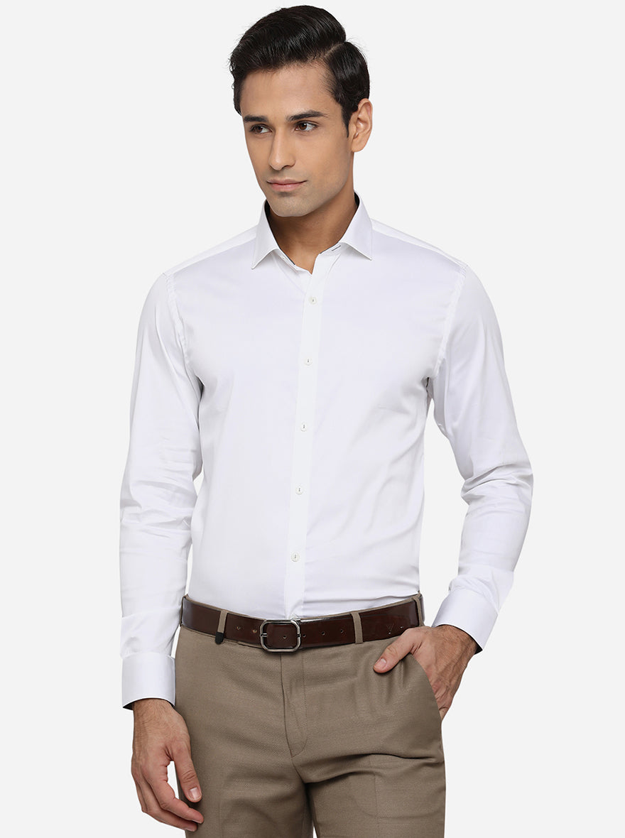White Solid Slim Fit Party Wear Shirt | Wyre