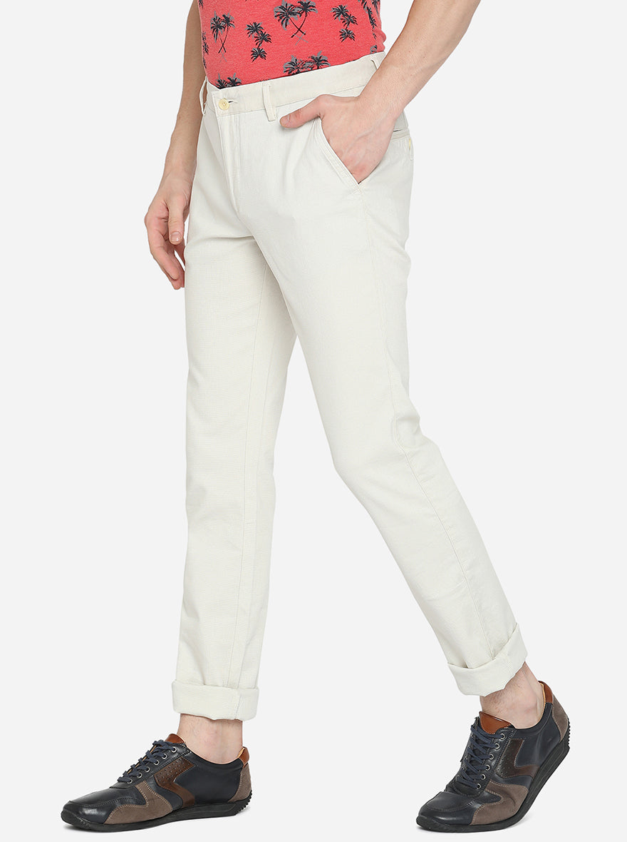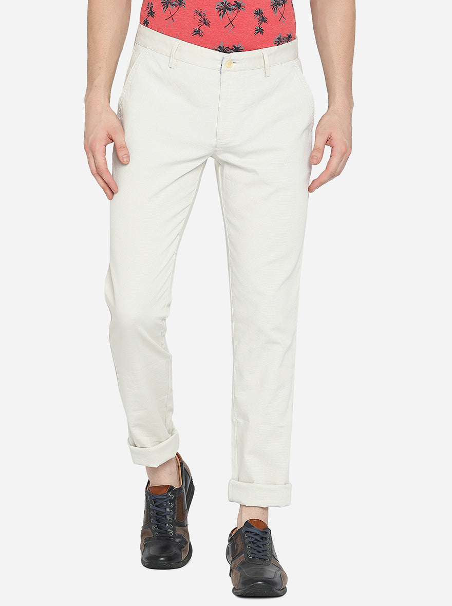 White Solid Super Slim Fit Casual Trouser | Greenfibre