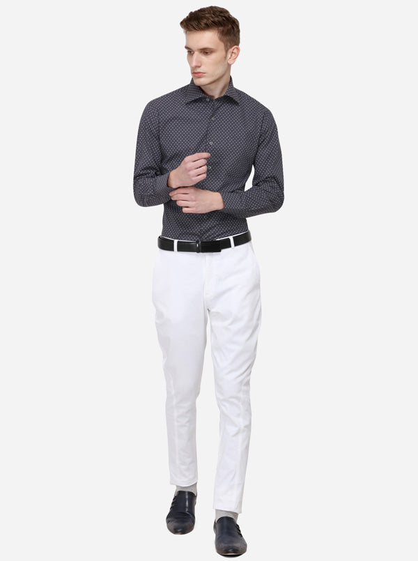 White Solid Super Slim Fit Formal Trouser | JadeBlue