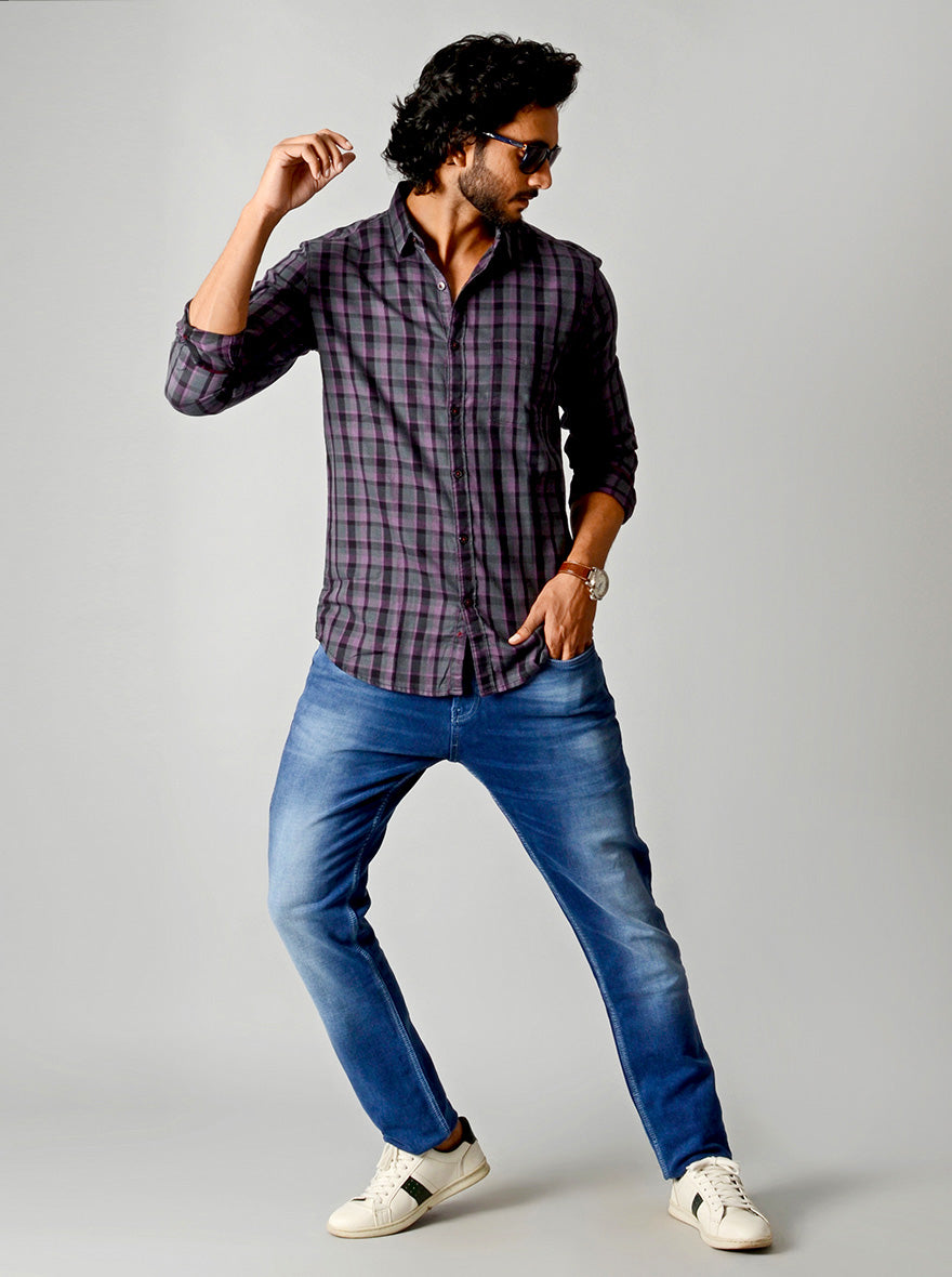 Details: The feel and comfort of this purple checks shirt is simply amazing. This cotton slim fit shirt features chest pocket, classic shirt collar and front buttons fastening. The curved hem is stitched to provide a final touch to this piece.