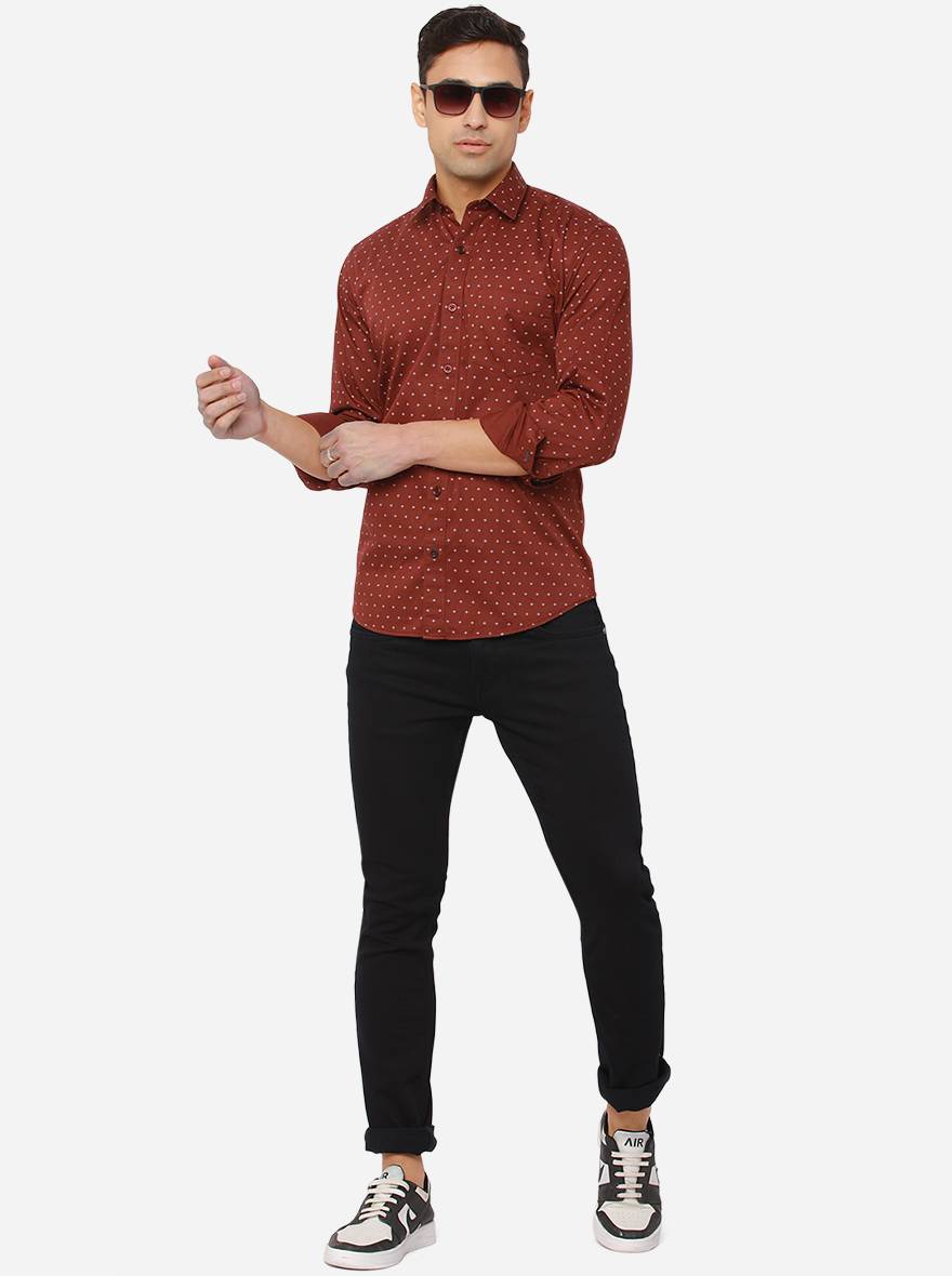 Windsor Wine Printed Slim Fit Casual Shirt | Greenfibre