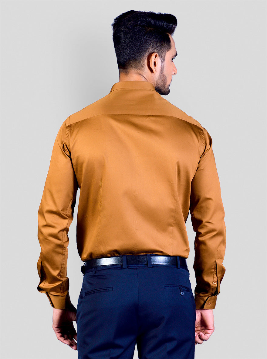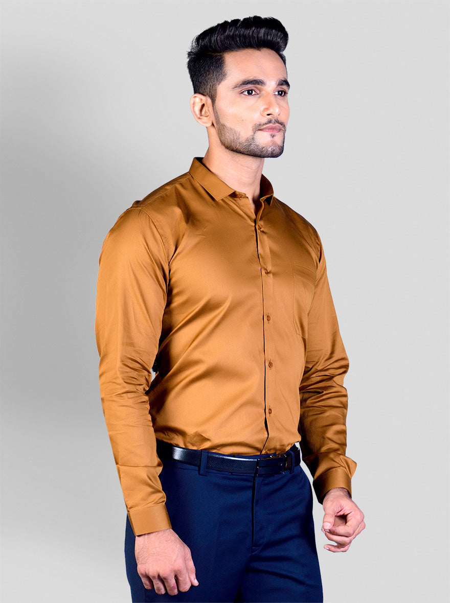 Details: This solid brown party wear shirt is the best choice to achieve a simple yet elegant look. Made from cotton satin fabric, this slim fit shirt features shirt collar, front buttons closure and chest pocket. This full sleeved mens shirt is a must-have in your wardrobe.