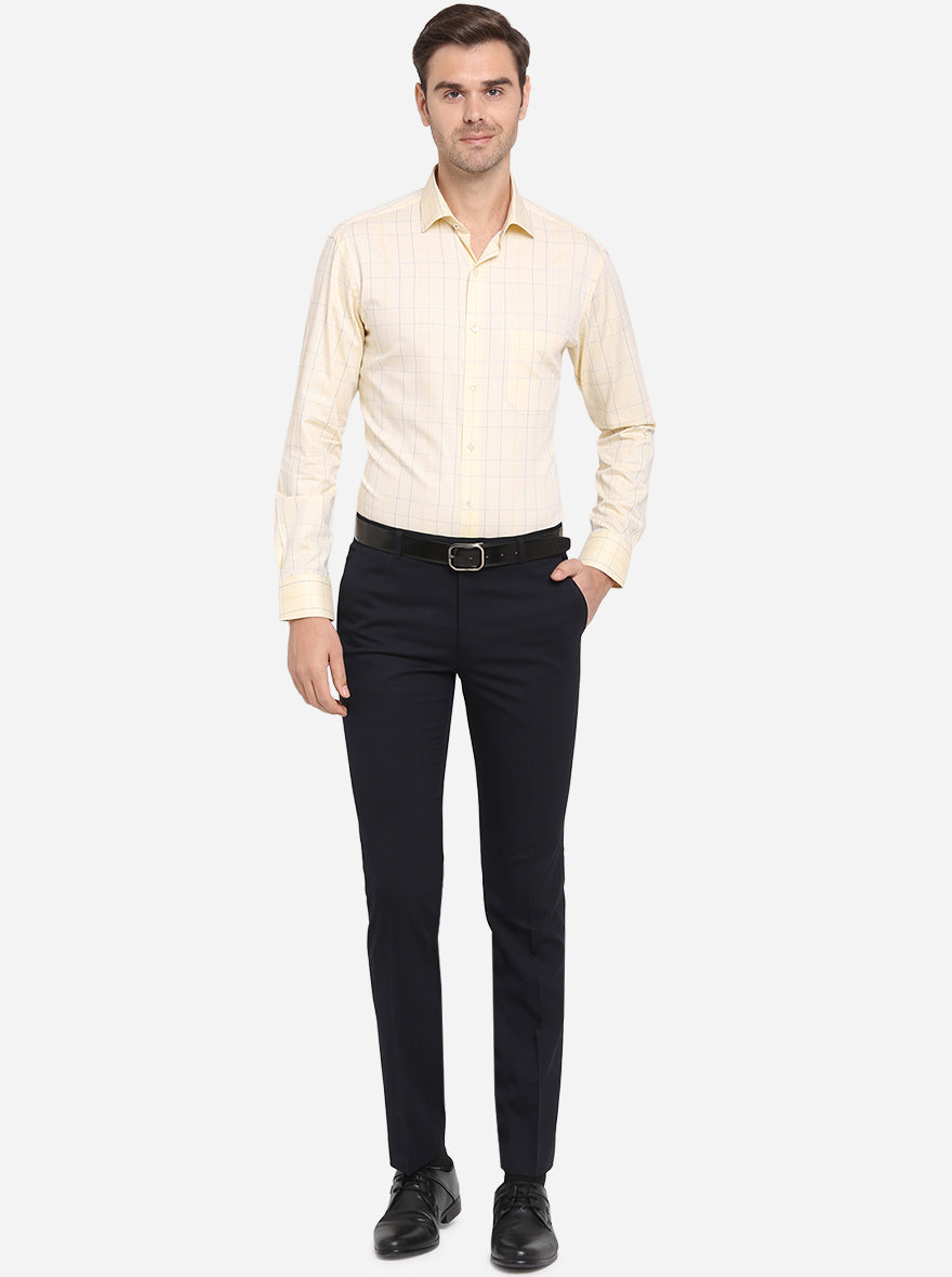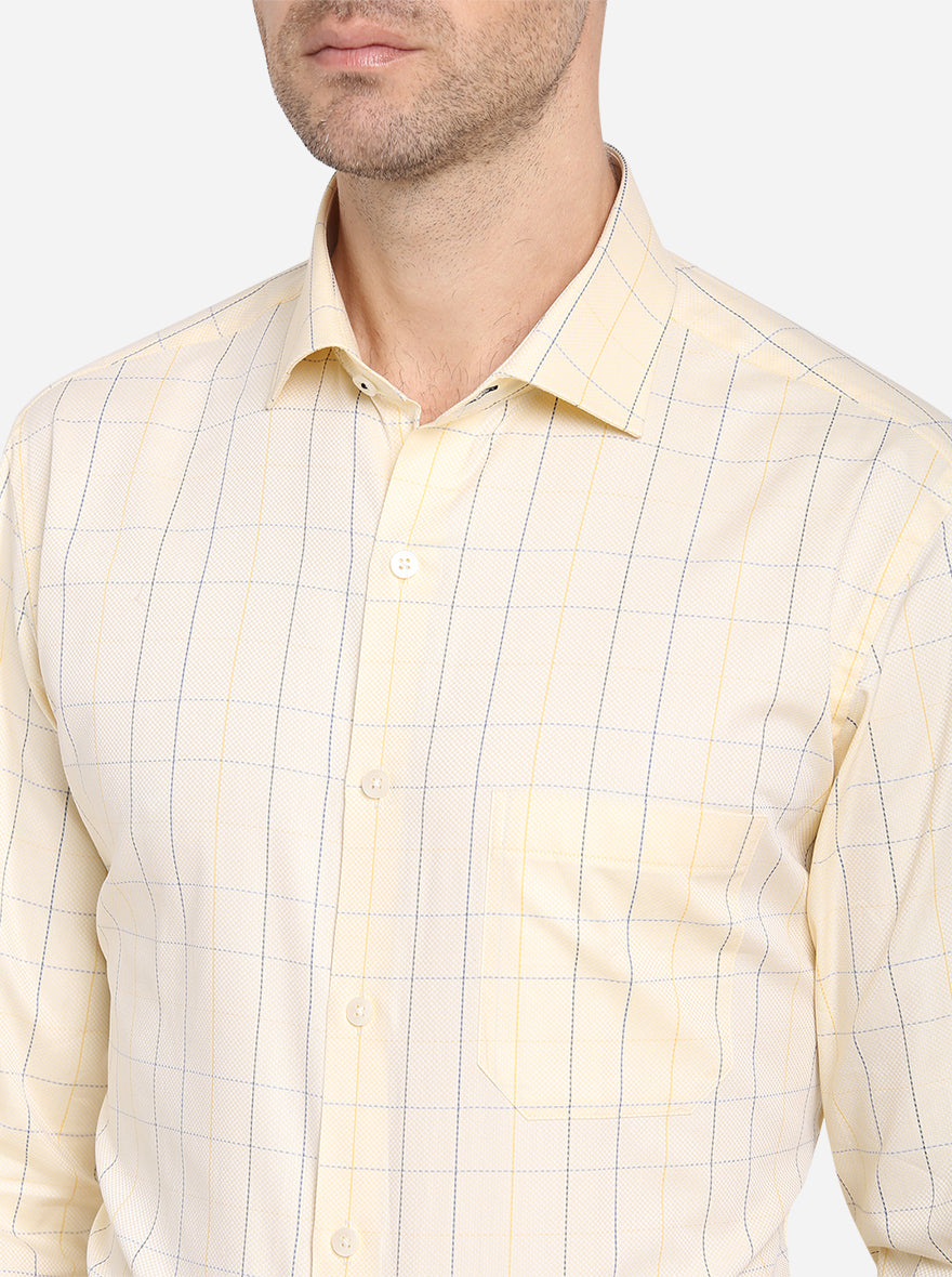 Yellow & Blue Checked Slim Fit Formal Shirt | Metal